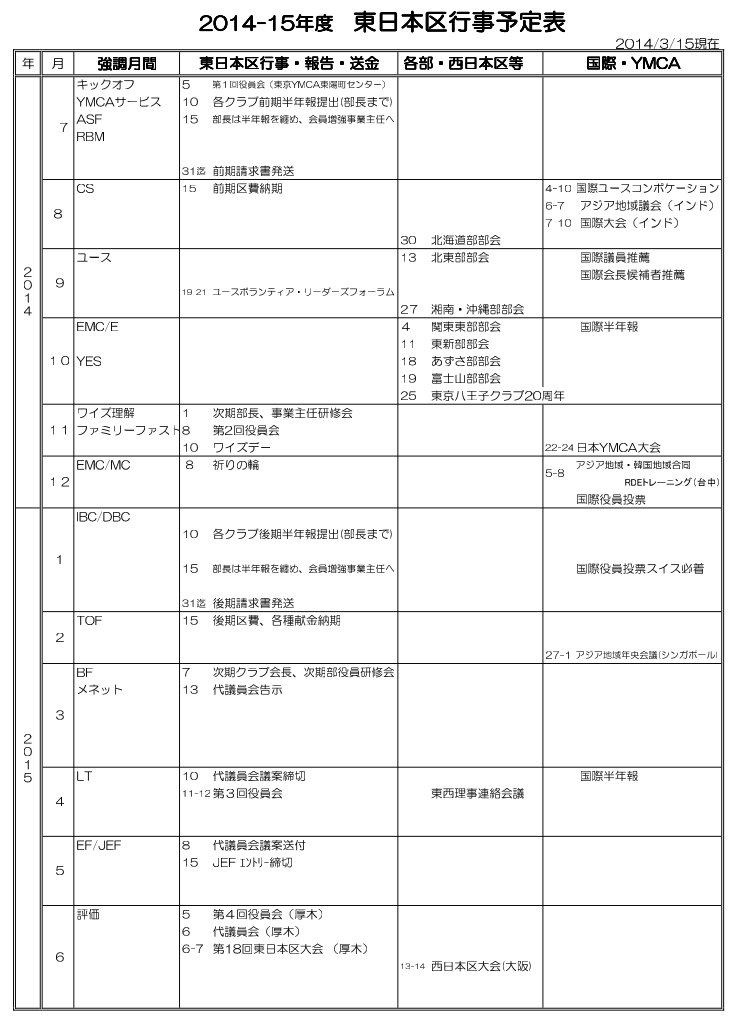 行事予定表