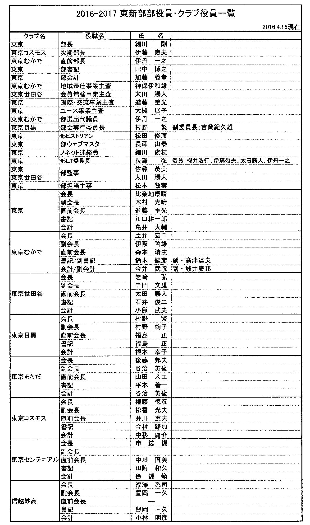 | | 東新部役員・クラブ役員一覧表 | 26 |
