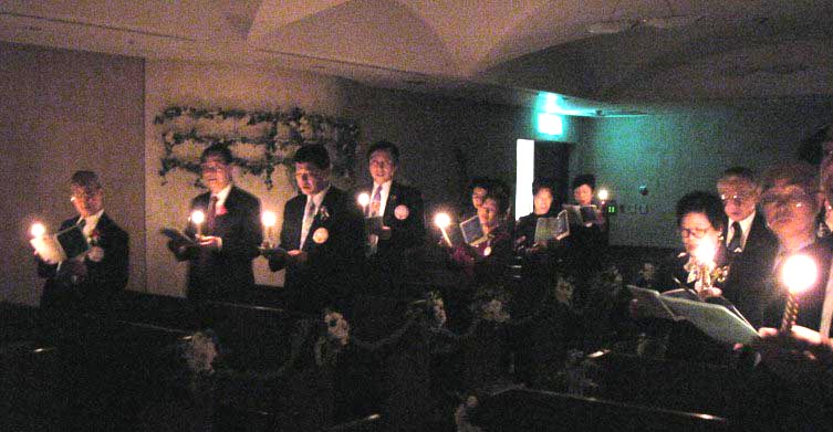 The worship began in the chapel of Arcadia Ichigaya, presided by Mr. Kenzo Sato, with the musical performance of Ms. Naomi Tanaka. We sang the hymns of Christmas. After the reading of Bible and the prayer, Mr. Furuya, clergyman and member of the Tokyo Club, preached us under the title "Don't fear", that means "Don't be anxious". He illustrated: the parents who have the child of the autism can solve their distress by telling it to the other person; the people whose power is weak can pull out a big stock by gathering and cooperating. It is important to ask without fearing whether there is a solution which is more important, without worrying by ourselves. One child is born in this world where you are, and he sleeps in a feed tub being wrapped in a cloth. Go to find him. Also, Mr. Furuya introduced the idea "pay forward" which Mr. Shigeaki Hinohara proposed. God sent first his child, treasury whom he loved most ardently, to this world to release us from the sin. We must remember that all the events of Bible started from it. This year began in the war and ended in the war. The darkness seems dominate the inside of our heart in 2005, too. However, God sent us the Saviour who gives us a hope which shines in the darkness. Let's celebrate Christmas sincerely remembering it. The meeting donation was sacrificed as the Niigata Prefecture Chuetsu earthquake relief fund through the YMCA.