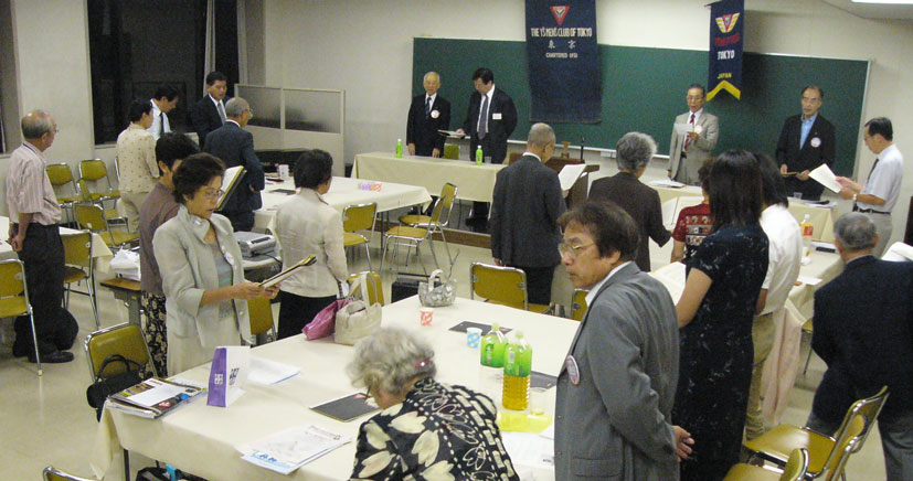 In the regular meeting in September, after guest introduction, the vice-president, Mr. Chino, read out "the Mission to the Peace", statement whitch the YMCA Union of Japan proposed to commemorate the 60th anniversary for the loss of the World War II and the atomic bombardment to Hiroshima and Nagasaki, and the board of directors in the YMCA Union of Japan confirmed this appeal for the peace. All the attendants approved this statement with high tone where we declare the determination to make an effort toward the realization of peace.
