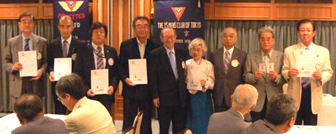 Next Mr. Daisuke Watanabe, Youth member who visits Norway in the STEP, was presented the support money from the Toshin District by the DG Mr. Hasegawa, the support money from the Japan-East Region by Mr. Hosokawa and support money from the Tokyo Club by the PC Mr. Chino. Mr. Watanabe told his thanks and said that he will report well the situation of the camp and the Area Convention in Europe.