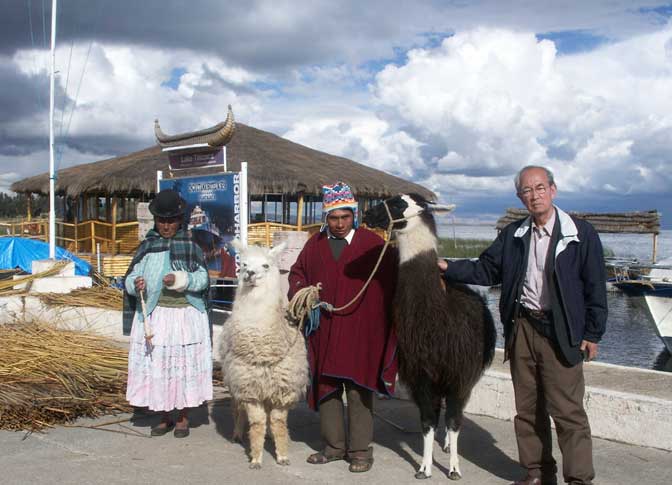[チチカカ湖の浮島の前で]