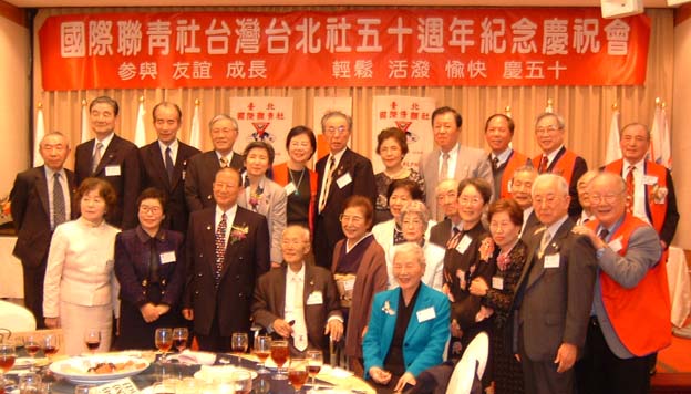 台北クラブ50周年記念会が去る3月12日、台北国際コンベンションセンターVIPホールにて開催されました。国際会長、アジア会長、区理事を始め、フィリピン、香港、韓国、日本、地元台湾など約300名が出席し6時間にもわたり台湾区大会の如き盛況でした。藤井理事は台湾区からの新潟中越地震見舞金に対するお礼を兼ねて台湾語と英語で挨拶し大きな拍手を受け、東京クラブ山本会長は英語で挨拶し好評でした。