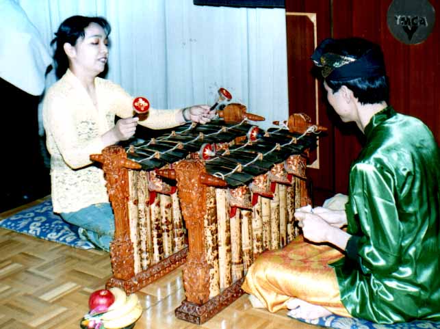 晩餐後のゲストスピーチはYMCAの維持会員であり、江戸城ファミリーウォーク、ウエルネスウォークラリーにも参加されている東京芸術大学講師の増野亜子さんと夫の城島茂樹さんによるインドネシアの民族楽器「グンデル」の演奏。日本ではめったに聞けない珍しい楽器の、ご夫婦の息の合った素晴らしい演奏に一同聞き入ったひとときであった。